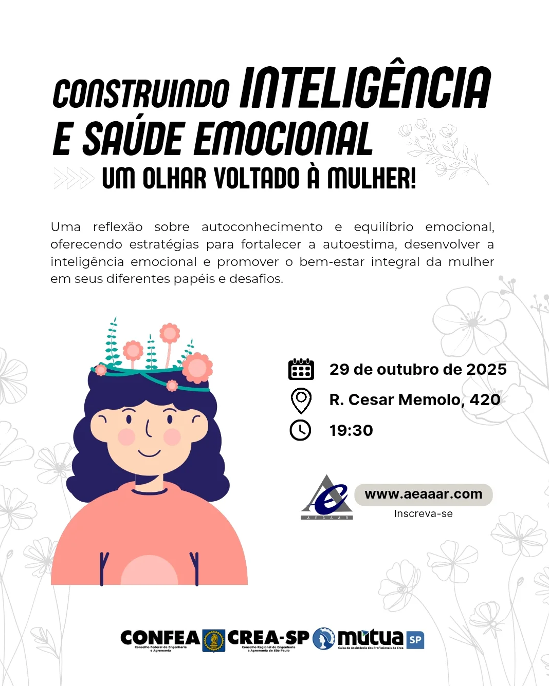 Na próxima quarta-feira teremos em nossa sede a palestra: Construindo inteligência e saúde emocional: Um olhar voltado à mulher
